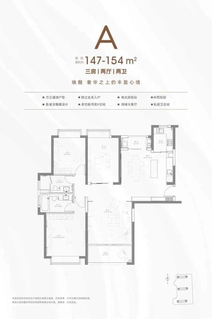 建面约147-154㎡ 3房2厅2卫▼