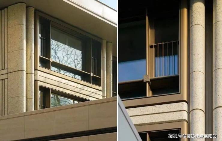 比如,立面采用 米黄色石材,仿古铜色的金属线条,再配合大面积玻璃的通透视感,超高的窗墙比,高级感不言而喻。 弧形元素在外立面上大量运用,使建筑呈现出柔和而不失庄重的美感。