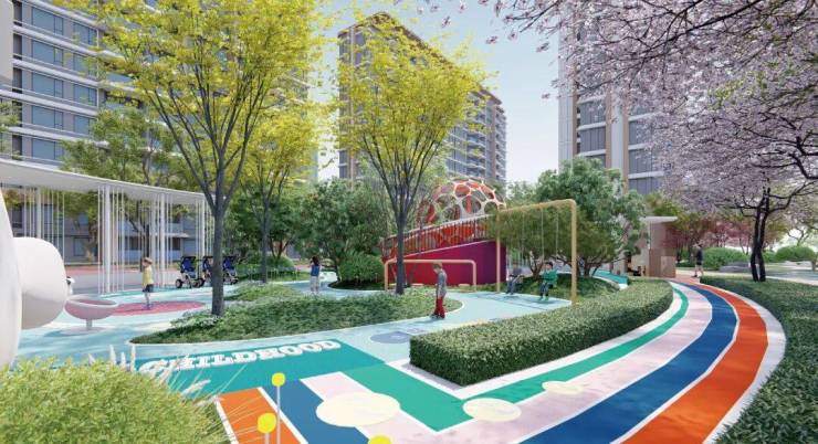 项目引水入园,打造抱水的社区中央公园,设计多元特色、适宜不同年龄人群的五大园系空间,高大乔木、灌木、花卉、草坪等多层次景观系统,丰富的植被,让项目为负氧离子环绕,在这绿意丰境之中,感受四季缤纷与鲜氧生活。