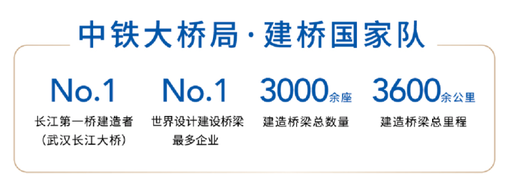 中铁大桥局集团前身为1953年修建万里长江第一桥“武汉长江大桥”经政务院批准成立的铁道部大桥局,是中国桥梁事业的领军者,是世界上设计桥梁最多的企业,中国“一带一路”走向世界的“建桥国家队”。在世界范围内建造桥梁总数超过3000 座,建造桥梁总里程超过3600余公里,建桥技术国际领先。近70年来,公司曾先后参与建设了杭州湾跨海大桥、东海大桥、港珠澳大桥、武汉长江大桥、南京长江大桥等一系列知名桥梁,一直引领着中国桥梁事业发展方向,以建桥的心志去建造住宅。