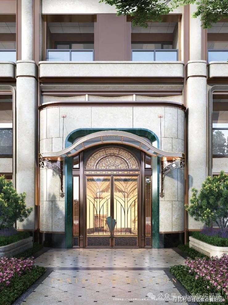 「入户门头」形取和平饭店经典拱门,配以碧绿色天然石材门套、彩玻花窗,重现百年外滩门廊的尊崇仪式。