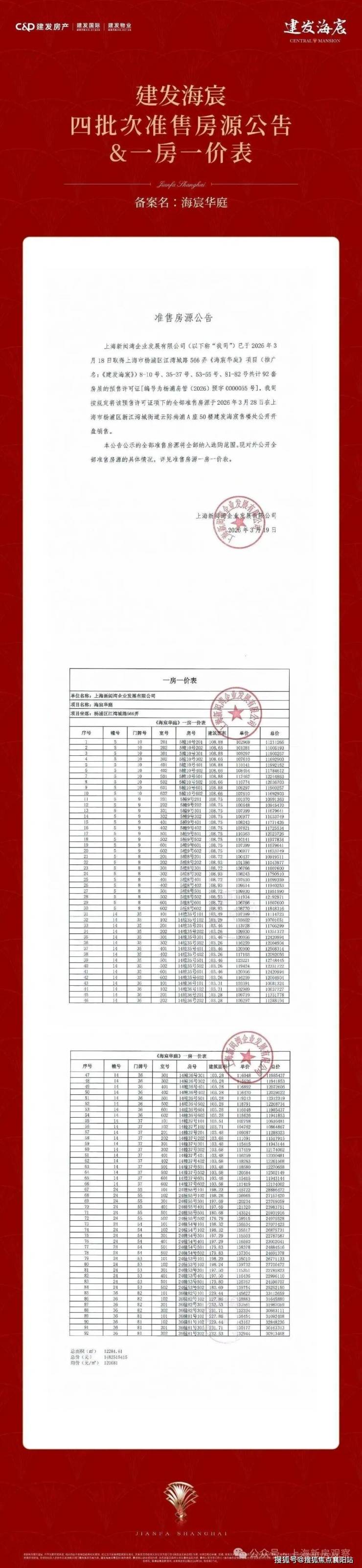 均价117343元/m²!新江湾城1.55低容墅区!「建发海宸」认购中!五批次加推131套约103-233m²洋房及叠加!附一房一价表!