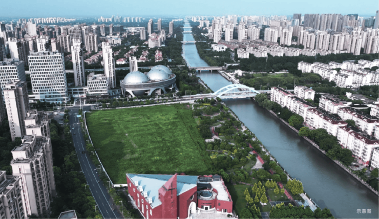 天誉原墅的位置,选得太聪明了。它就在奉贤新城南桥核心,远东路与运河路的交汇处,东边是远东路,南边挨着浦南运河生态绿地,西边是天主教堂,北边靠运河路,妥妥的新老城区衔接的黄金节点。