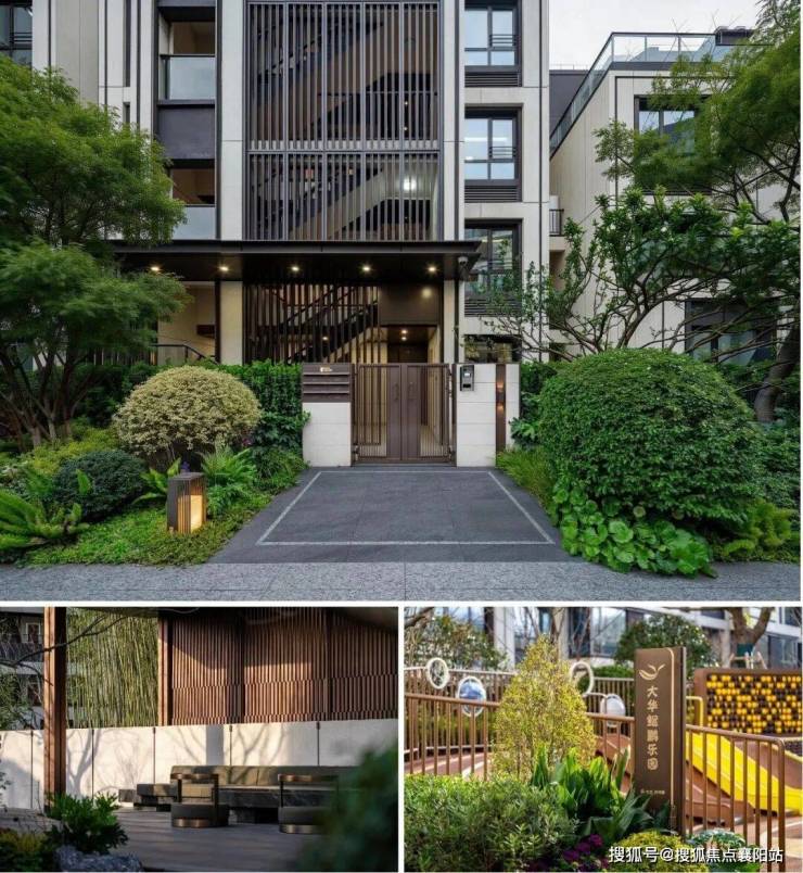 【大华·梧桐樾 | 越界】 在社区建筑的打造上,以20米长、5米高的星际酒店式超级门庭,甄选石材、玫瑰金不锈钢和自然景石,让归家仪式独具一格。美学立面精致升级,提升了建筑的整体性和耐久性,建筑立面视觉更加协调、美观,叠墅单元入口铁艺栏杆升级为玻璃栏板!