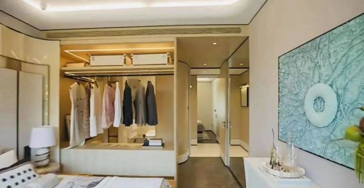 例如入户玄关铺设有“石材皇后” 鱼肚印象 ,这种级别的奢石在很多项目中通常仅作局部镶嵌。
