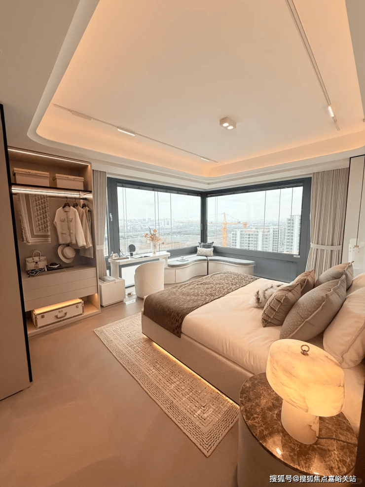 为打造顶级人居作品,绿城逸庐联袂汇张思建筑设计事务所、蓝颂设计集团、水平线设计、李益中空间设计等大师团队,将前沿设计理念融入建筑与生活细节。高层建筑立面以金色阶梯为骨架,层叠檐角如思想灯塔般扬起,搭配通透玻璃幕墙,兼具现代审美与质感;玲珑宝盒般的门头设计,呼应张江科学之门的金色塔冠,用现代设计语言凝练科技与美学,既彰显地标呼应感,也拉开归家仪式感的序幕。