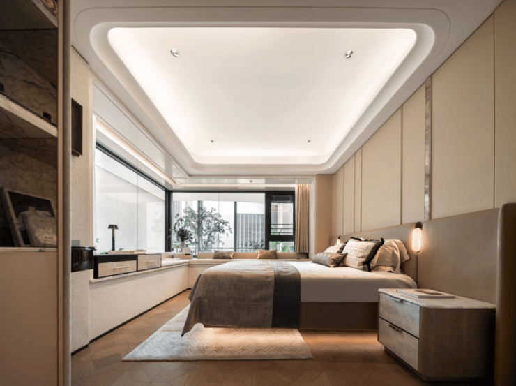 建面约134㎡的户型,总价约1500-1700万。该户型更为惊艳,打造了270°转角窗观景套房,让业主尽情享受阳光的温暖与美景的拥抱。