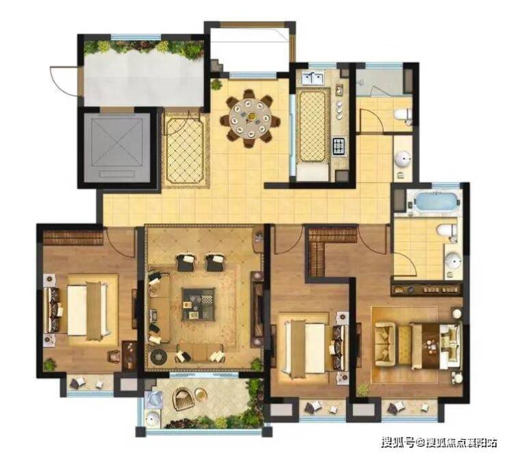 我重点看了一下139平米的三房户型,这是一个让我印象深刻的“神户型”-2。