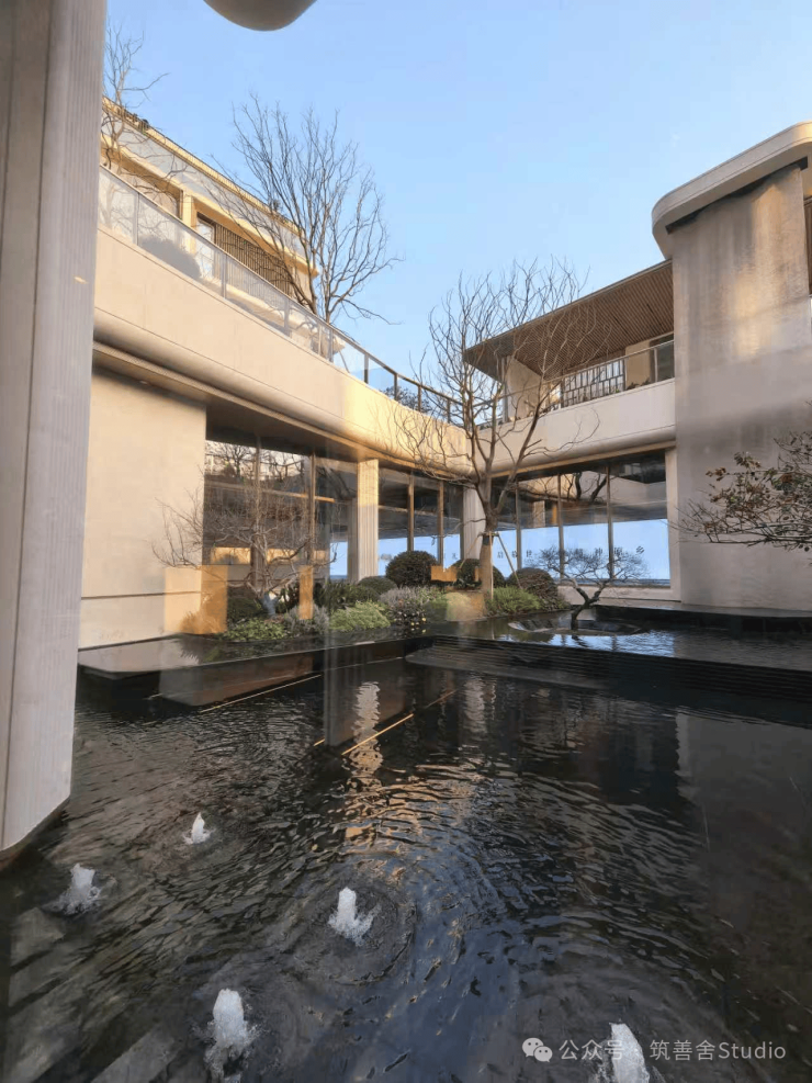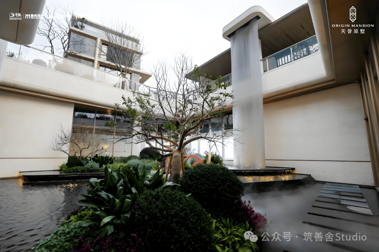 更值得一提的是,会所的下沉式庭院,设计得非常有格调,约10米落差的金属挂帘流水瀑布,如丝如缕,非常美观,平时坐在庭院里,听着流水声,看着周围的绿植,非常惬意;庭院里还有姿态优美的羽毛枫,搭配黑金沙花岗岩树池,一步一景,让每一次步入会所,都成为一场意境漫游,仿佛置身于江南园林之中,远离城市的喧嚣。