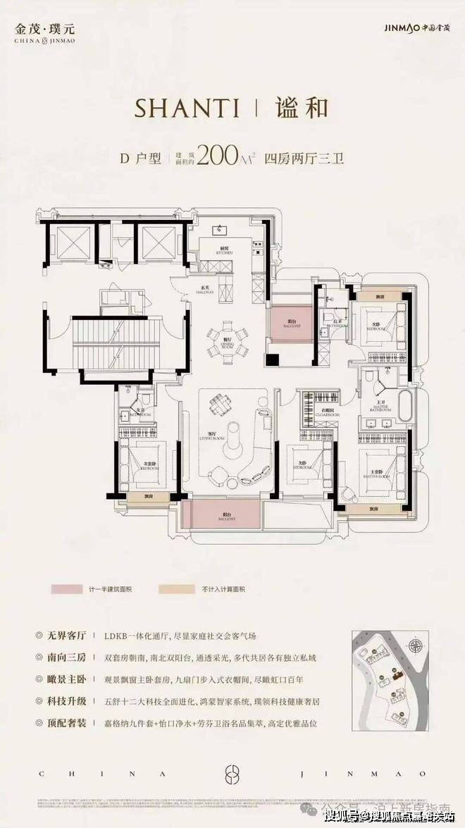 在金茂独有的12大科技住宅系统之上,璞元进行了全面升级优化,集金茂31年科技系统之大成,打造“舒温、舒湿、舒氧、舒音、舒净”全面进化升维的五舒科技系统,堪称金茂顶峯科技力作