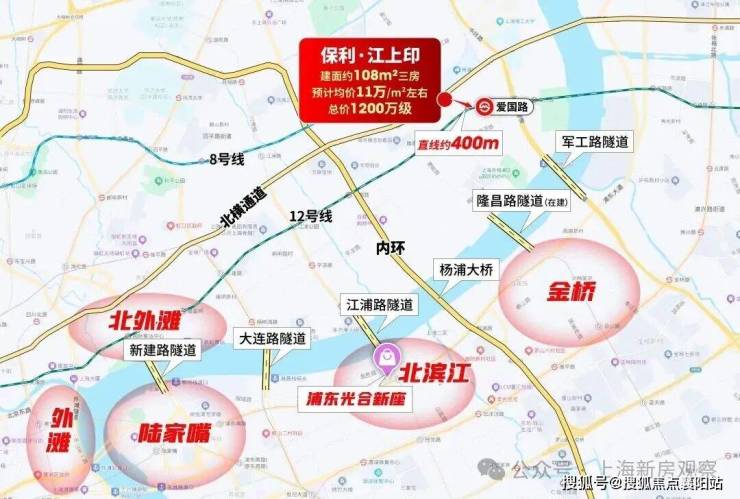 再加上内环和五条过江隧道(包括桥)的加持,像杨浦滨江 核心区、北外滩核心区、陆家嘴、世纪公园、南京西路、外滩 等都是业主未来的生活圈