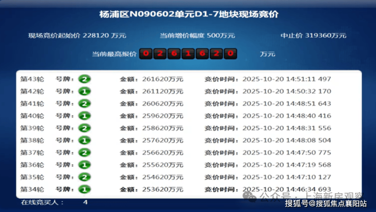 10月20日,上海八批次土拍中, 保利置业以总价261620万元竞得杨浦定海N090602单元D1-7地块,该地块溢价率14.69%,楼板价69958元/㎡。