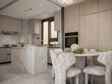 外立面采用经典时尚现代主义风格:通过温和的色彩搭配、简练的横向线条、黄金比例的立面比例、极简抽象的建筑符号、建筑顶部的飘板,呈现一个现代风格和艺术气质结合的高品质社区。