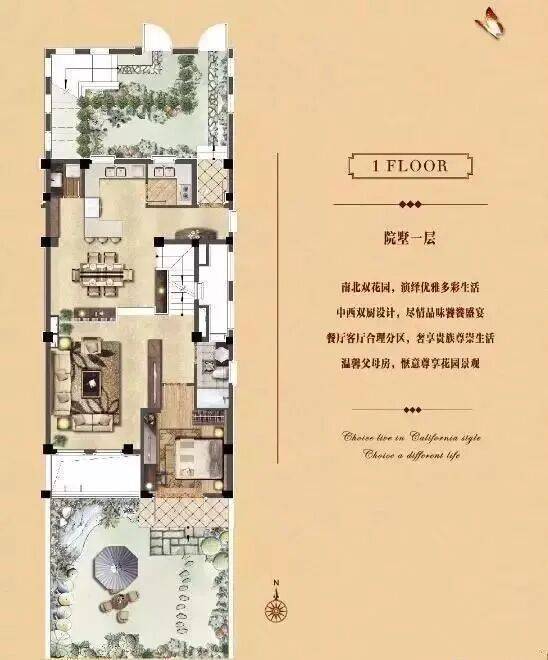 同润•南央美筑力邀国际顶尖团队打造出纯正的南加州风情建筑,暖黄色的外墙、精致的花架矮墙、红色的筒瓦,仿佛来自海岛小镇的一抹温暖阳光,让住户时刻感受度假般的生活环境。