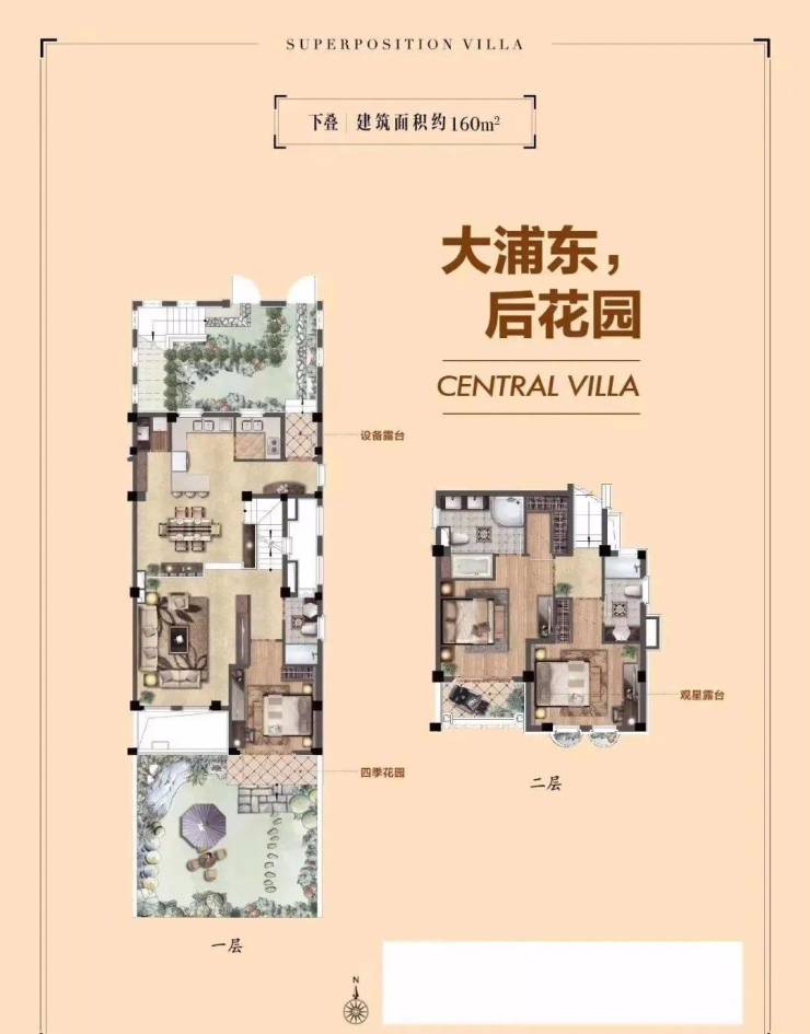 下叠户型是建筑面积160平米,享有130平米左右的双层阳光地下室,下叠户型由地下一层、地上两层总共3层空间组成。
