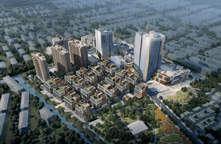 项目东地块分四期开发,一期花园独栋办公,共19栋;二期为一栋5A甲级写字楼、 minimall ;三期为西塔公寓、商业block街区,5栋小独栋办公;四期为758套租赁式公寓。