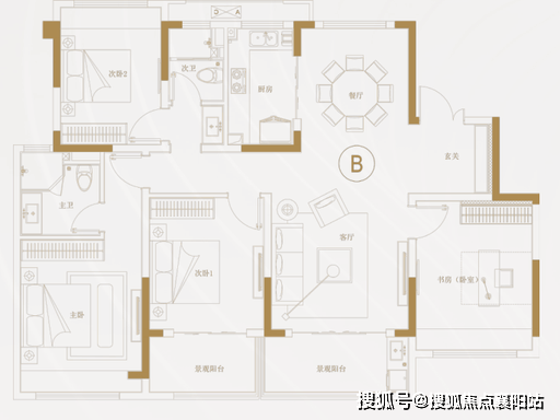 123㎡三房两厅两卫 :南向三开间、全明通透、主卧带独立卫浴与飘窗、餐客一体、U 型厨房、南北双阳台,满足三口之家、二孩家庭日常居住需求,空间舒适、布局合理、实用性强。