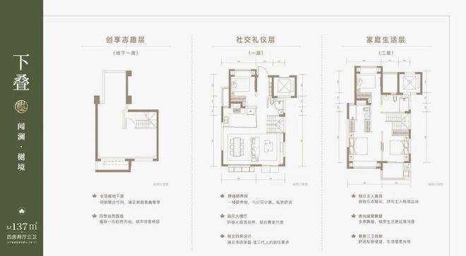 建面约137㎡下叠,四房两厅三卫全能格局,非常适合二娃家庭以及三代同堂。