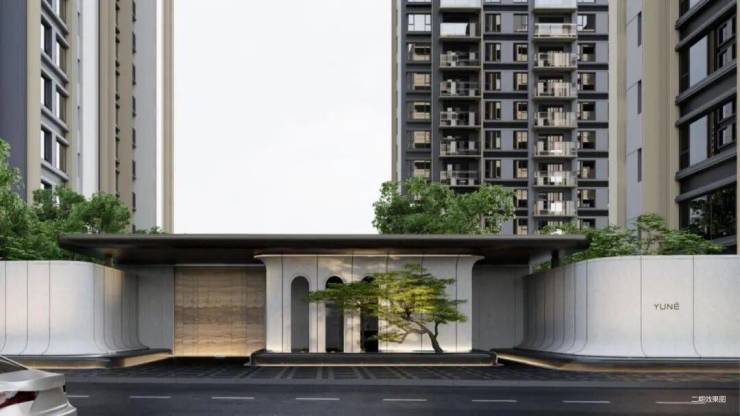 据悉,项目入口门楼延续中式的端庄大气,以传统的坡屋顶展现东方的韵味,简化繁琐的细节,凝练出符号性的语言,结合两侧景墙呈现开敞的姿态,体现项目的昭示性与尊贵感,目前已实景呈现。