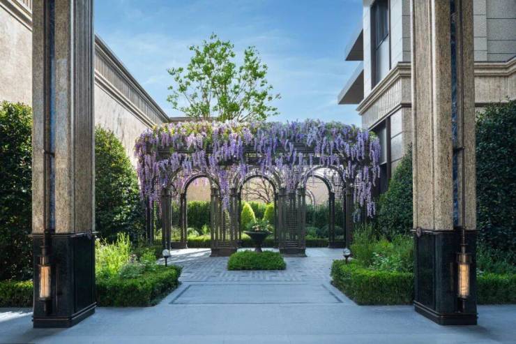 值得一提的还有:为了满足不同年龄段业主的需求,项目在多楼栋设有架空层,涵盖健身、阅读、娱乐等功能,并且将海派元素融入其中,有一种 五星级酒店长廊的既视感!