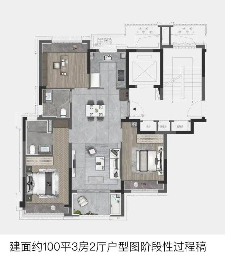 ①建面约100㎡3房户型: