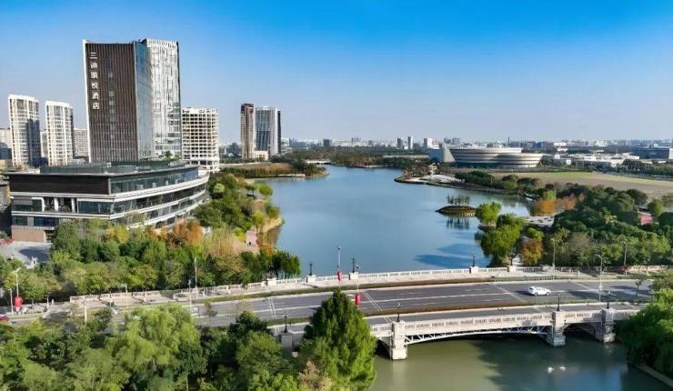 项目所在的松江新城EBD生态商务区更以 “中央公园 + 五龙湖滨水带”为轴,呈现全市仅此一座私藏约27.8万方的五龙湖休闲生态绿地、约13.4万方的中央绿核,水域绿地占比高达 31%,加之40余处星罗棋布的街角口袋公园,附近还拥有 佘山国家森林公园、辰山植物园等超大体量公园集群,人均绿地面积达15.2平方米,远超上海平均水平,“300米见绿,500米见园”是日常。