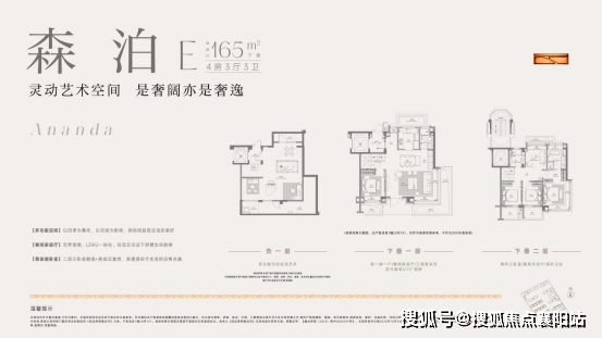 格局设计 :上中下叠各具特色,南向多面宽设计,全明通透,动静分区极致优化;下叠带私家庭院,中叠带观景阳台,上叠带星空露台,满足不同家庭对私域空间的需求。