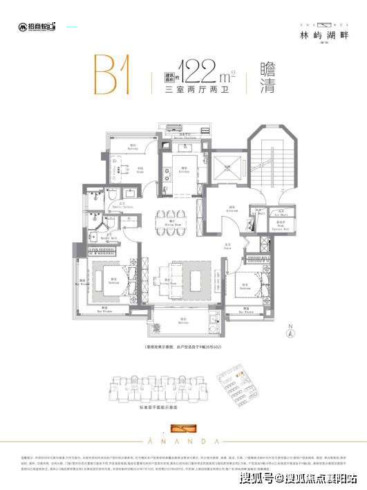 建面约 122㎡三房两厅两卫 :主流改善爆款,宽境格局、双联阳台、全卧飘窗,适配二胎家庭、三代同堂,空间尺度拉满。