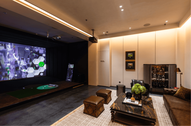 2个高尔夫室内模拟器,现场已经可以体验,还配备了专门的设备教练,保证高尔夫新手也可以在小区里玩的尽兴。