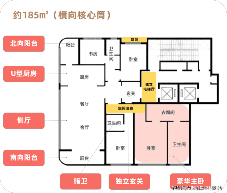 185㎡的横置核心筒户型,进门就能感受到独立玄关带来的私密性和仪式感,收纳空间也设计得很贴心。