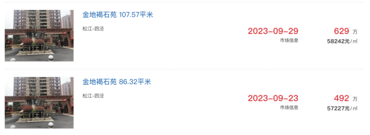其他次新小区,比如泗泾大盘金地玺悦,二手房成交价也都在6.3-6.9万/㎡之间。