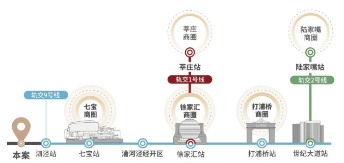 以人民广场为中心,泗泾在这些板块中占据绝对优势。如果以徐家汇副中心或者莘庄副中心为圆点的话,泗泾到中心的距离优势更加不可撼动!
