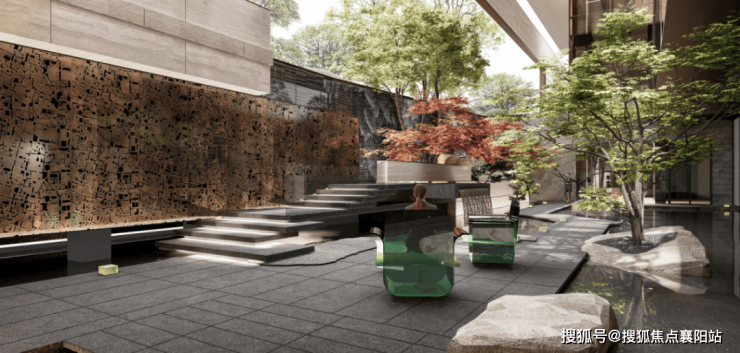 下沉庭院 :打造约 1500㎡下沉庭院,营造多层次景观空间,设置休闲座椅、阳光草坪,是业主日常休闲、邻里交流的好去处。