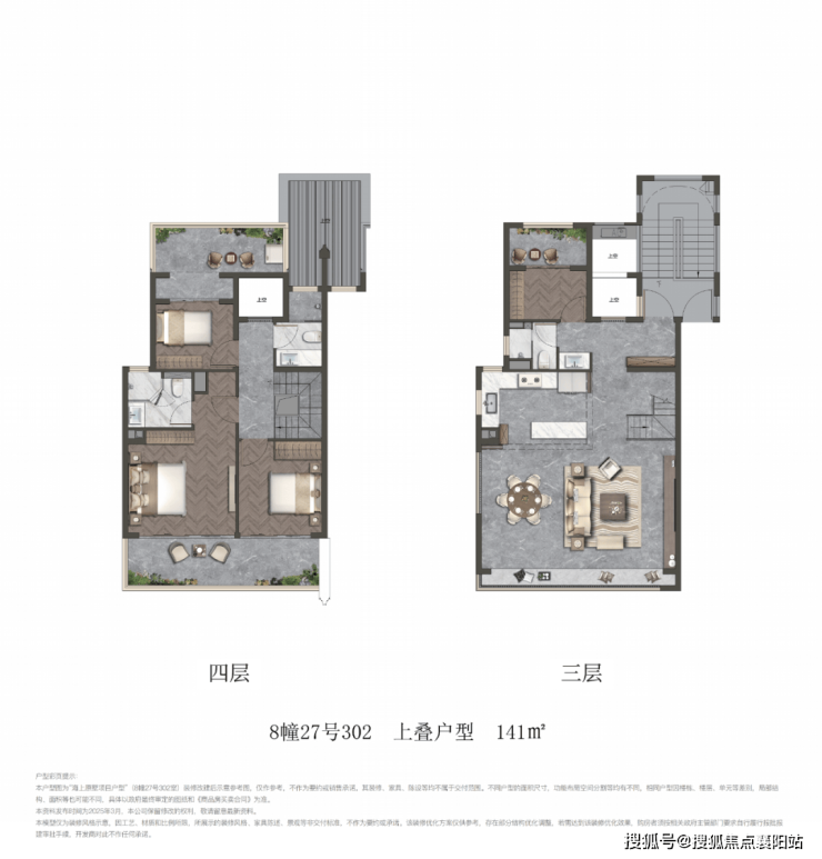 建面约 141-160㎡叠墅(上 / 中 / 下叠) :低密墅质改善,双层空间、私家庭院 / 露台、主卧套房,适配追求墅居体验的改善家庭。