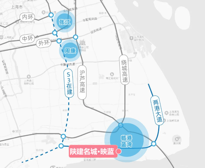 还有在建S3高速(在建),可直通张江,据悉S3还能和两港大道实现互通。