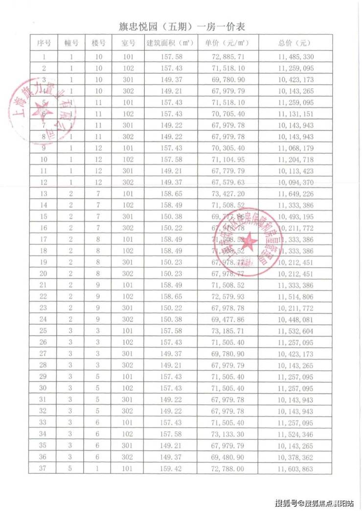 项目一房一价表▼