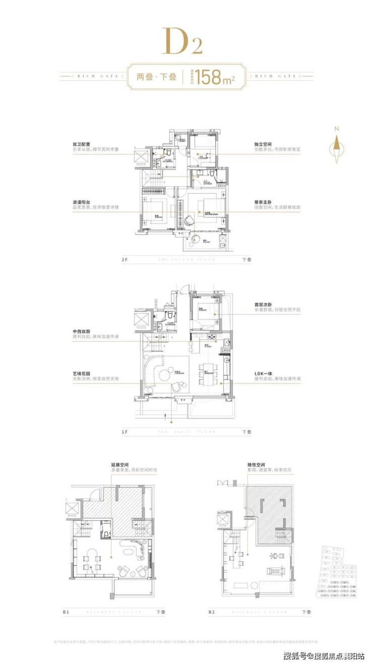 南向大花园、北入户花园、以及2层地下空间