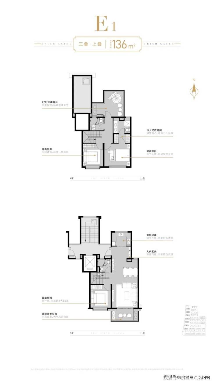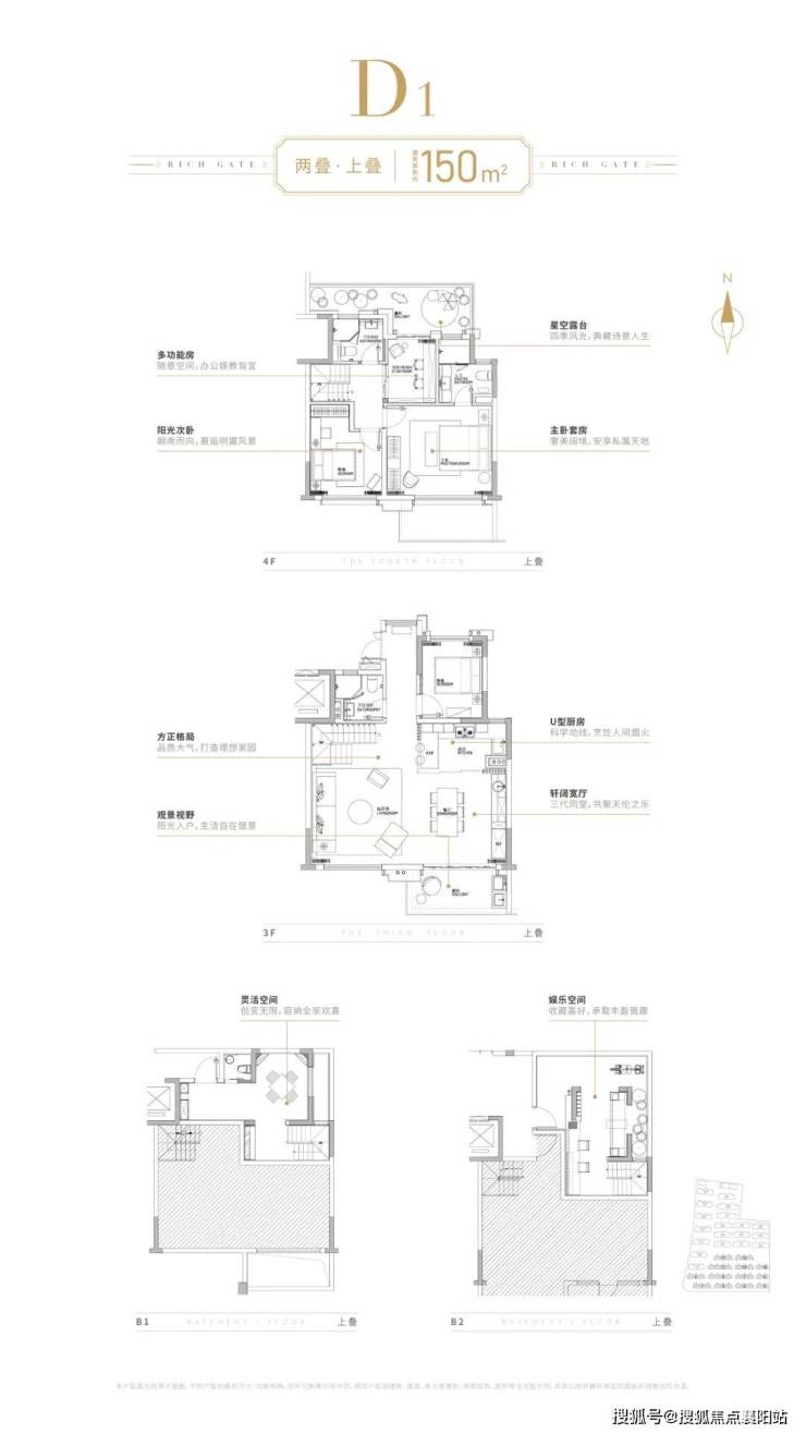 项目上叠实现了3房功能性,符合市场主流需求;分层而居,下层活动空间,南向大开间+南北通透,采光通风性能佳,尺度开阔;上层居住空间,主卧套房设计,北接星空露台;
