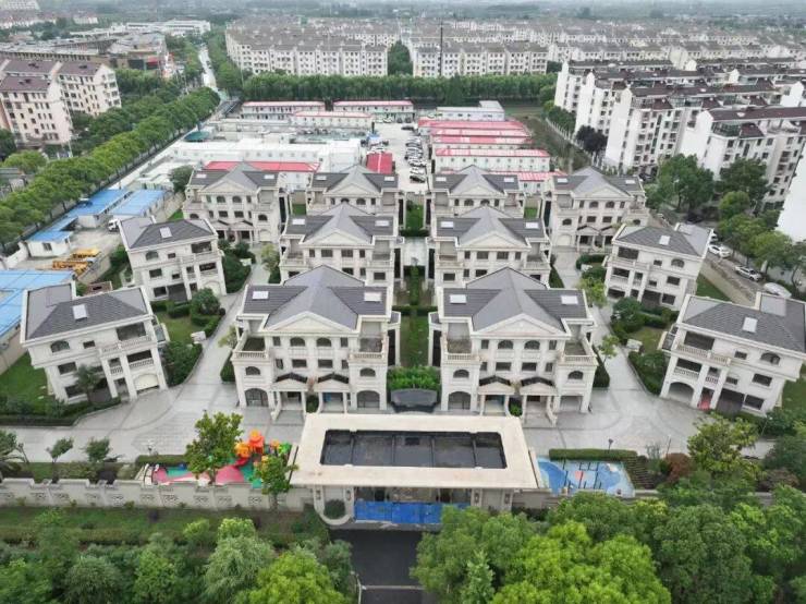 放大卫星地图来看,这个小区应该也是准现房或者现房状态,4栋独栋,16套双拼别墅(目测),建面约277-402㎡。