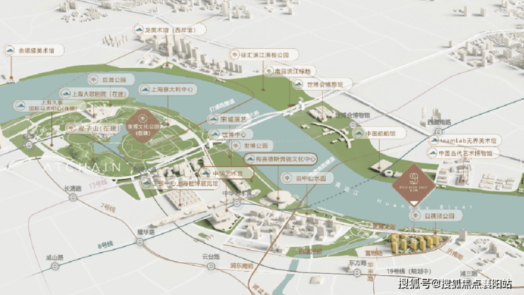 生态人文 :城市绿肺环绕,人文底蕴深厚。项目步行 5 分钟即达 世博文化公园 (上海最大城市滨江公园,占地 188 公顷),自驾 5 分钟可达 黄浦江滨江步道 ,坐拥城市核心生态绿肺,是日常休闲、健身、遛弯的绝佳场所。同时,板块内艺术氛围浓厚,梅赛德斯 - 奔驰文化中心、中国馆、中华艺术宫、上海科技馆等文化地标环伺,高频举办艺术展览、文化活动,是上海人文浓度最高的板块之一。