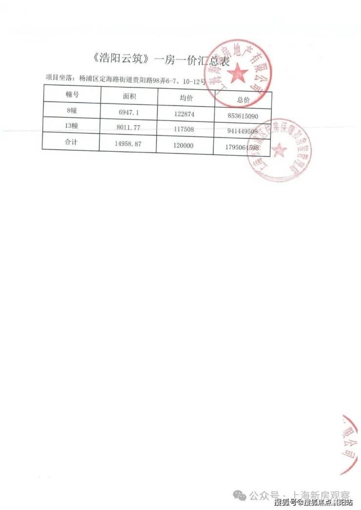 上期一房一价表如下: