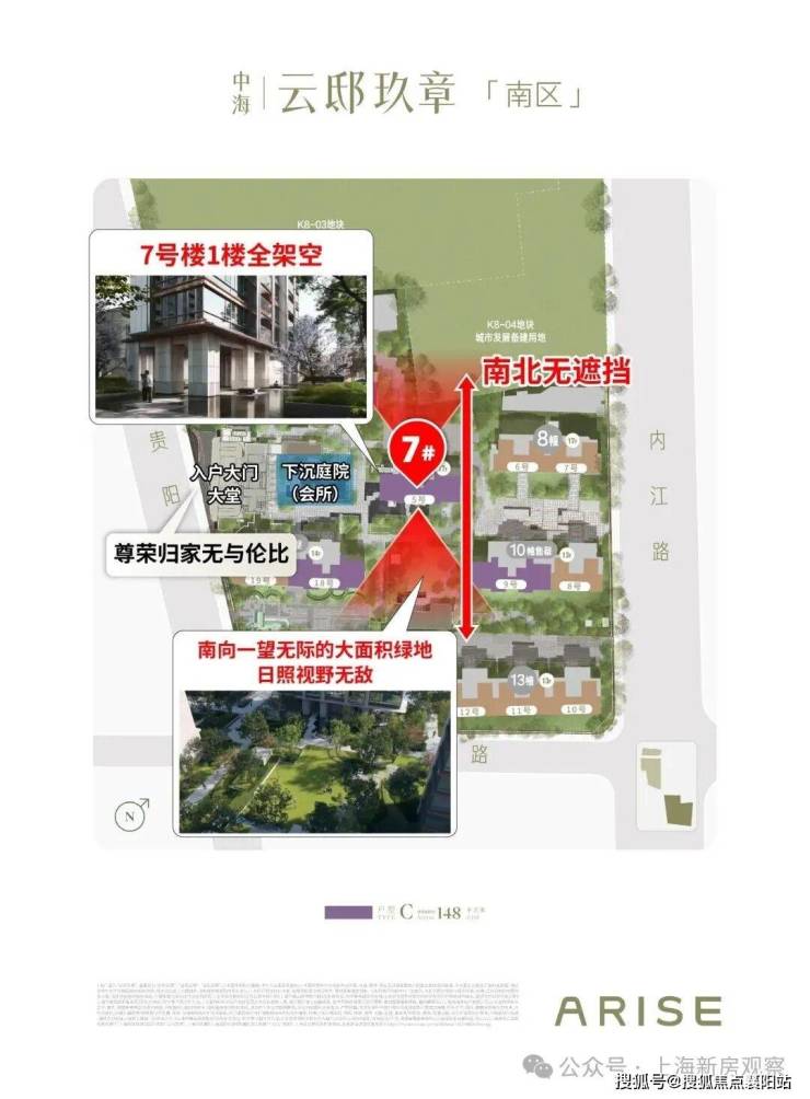 再来重点看楼王7号楼,全部是建面约148㎡4房改善大户型,可以说集项目所有精华于一体。