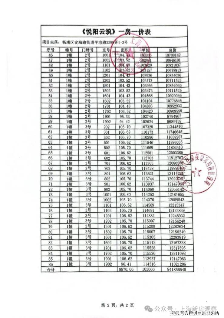 一房一价表,总价968万起