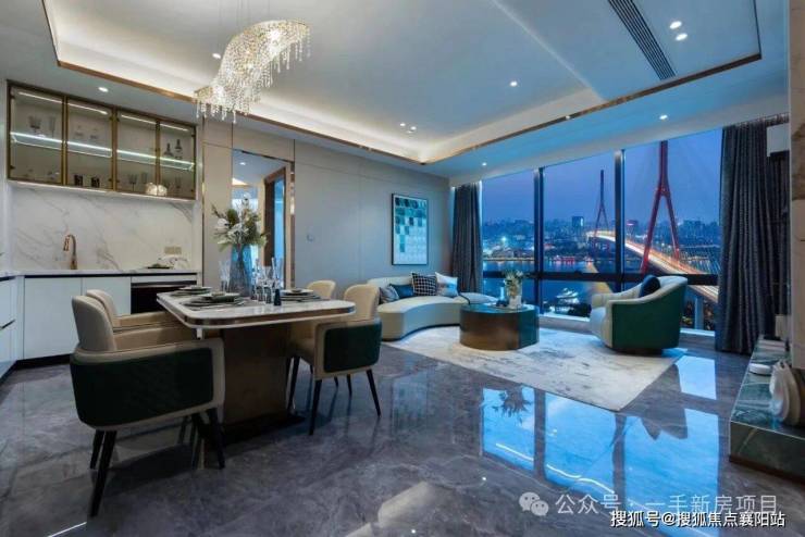 LDKB一体化设计是户型的另一大特色,打破客厅、餐厅、厨房、阳台的空间界限,打造开阔通透的公共空间,最大户型的公共空间面积可达120㎡,既满足家人聚会、朋友宴请、商务接待的需求,又能保证空间的私密性与舒适性。阳台采用全景落地窗设计,宽度可达约15米,深度约2.2米,打造专属江景露台,业主可以在这里品茶、赏景、烧烤、休闲,清晨看日出江花,傍晚赏落日余晖,尽享江景生活的雅致与惬意。