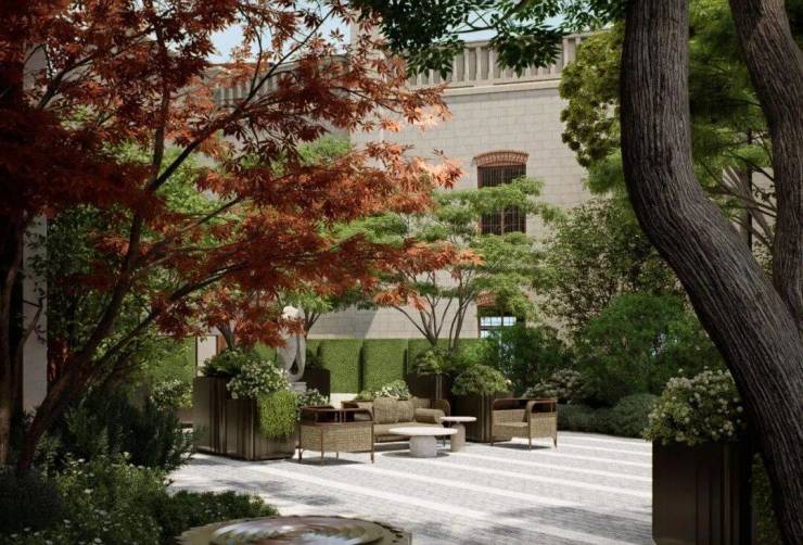 这样不仅能有楼栋共享中心景观庭院,确保每户推窗即见层次丰富的园林景致;还能最大化楼间距,最大化采光、最大化视野;让中央景观与边角院落形成多维度的空间层次。