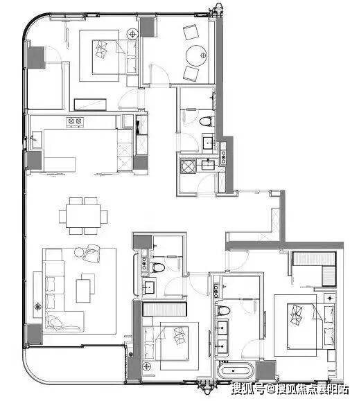 220-264㎡四房两厅四卫(终极改善) :四开间朝南、面宽约 14 米,约 7 米宽厅 + 双阳台,主卧 270° 观景 ,独立书房、双儿童房、保姆套房,满足三代同堂 + 社交宴请全需求。