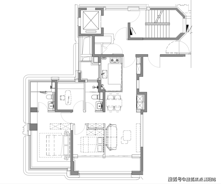 我们以边套的建面约108㎡三房两厅两卫来看。