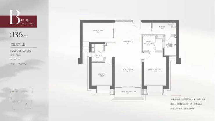 双阳台设计,南北采光更通透,隐私性更佳,非常适合三口之家或是年轻家庭居住,主打舒适度与功能性!