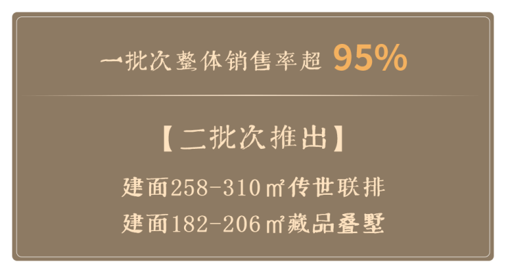 如今,二批次即将推出建面约258-310㎡传世联排、182-206㎡藏品叠墅重磅归来,稀缺臻席,封藏在即。