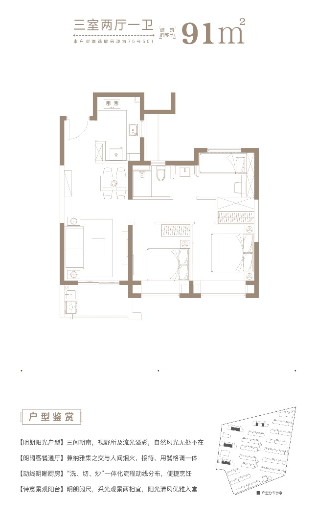 格局:三房两厅两卫,南北通透、全明户型,主卧套房设计,总价 350 万起,是刚需改善的优选。